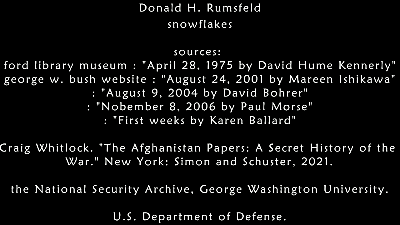 Pres. George W. Bush official website archive: "24 August 2001" by Maureen Ishikawa. "9 August 2004" by David Bohrer. "8 November 2006" by Paul Morse. "First Weeks" by Karen Ballard.