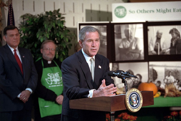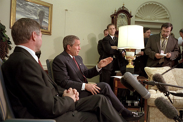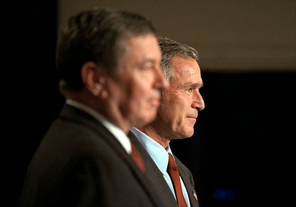 photo credit: Tina HagerPost-9/11, no lapel pin on Bush or Powell. |