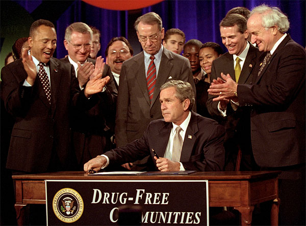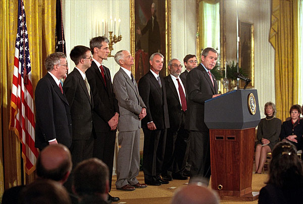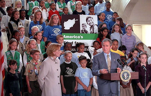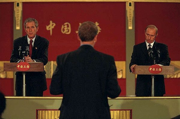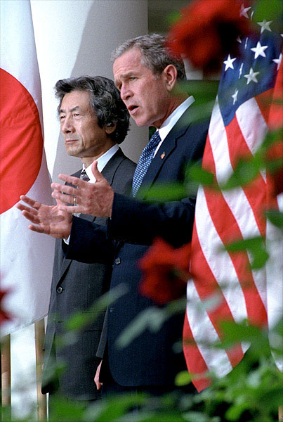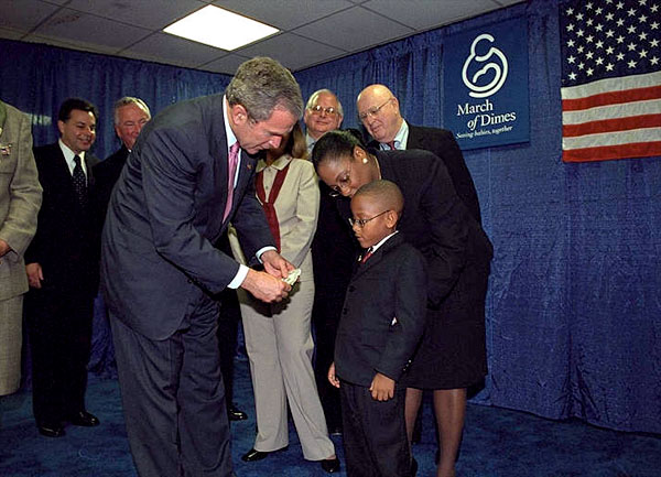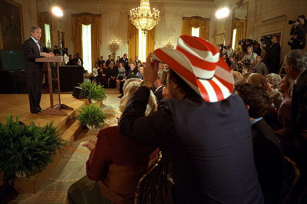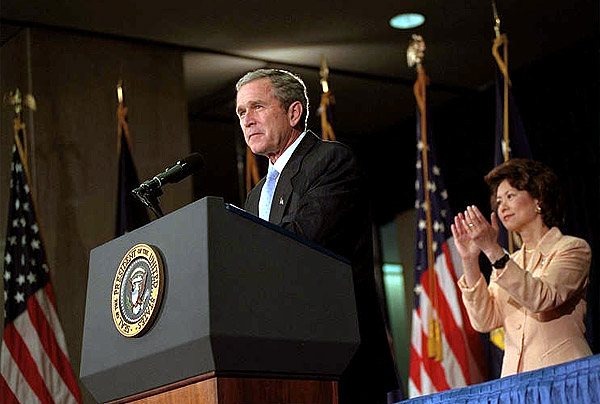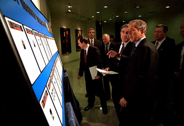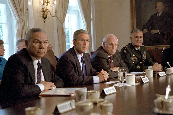 photo credit: Tina HagerPost-9/11, no lapel pin on Bush or Powell. |